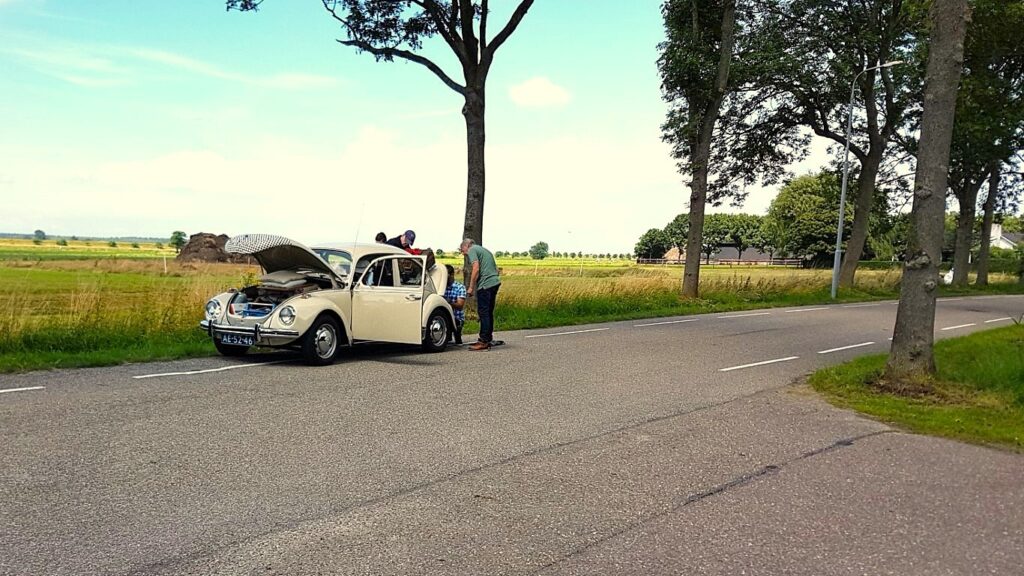 En… niet leuk maar toch fijn, dat mochten er autoproblemen zijn er altijd wel mederijders zijn die het een en ander bij zich hebben en helpen om je zo snel weer op de weg te krijgen, zodat de rit weer vervolgd kan worden.